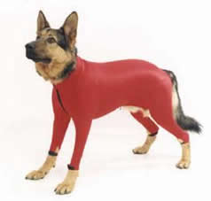 Rehabilitation: Helps keep dogs from bothering/irritating wounds, stitches, rashes and medicated areas located on body and legs. Ideal for dogs with allergies. Easier on you and your dog than using thebulky plastic Elizabethan (cone shaped) collars or ill fitting garments.