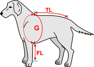 • Top Line - Measure from the middle of the shoulder blades along the back bone to the dock of the tail.
